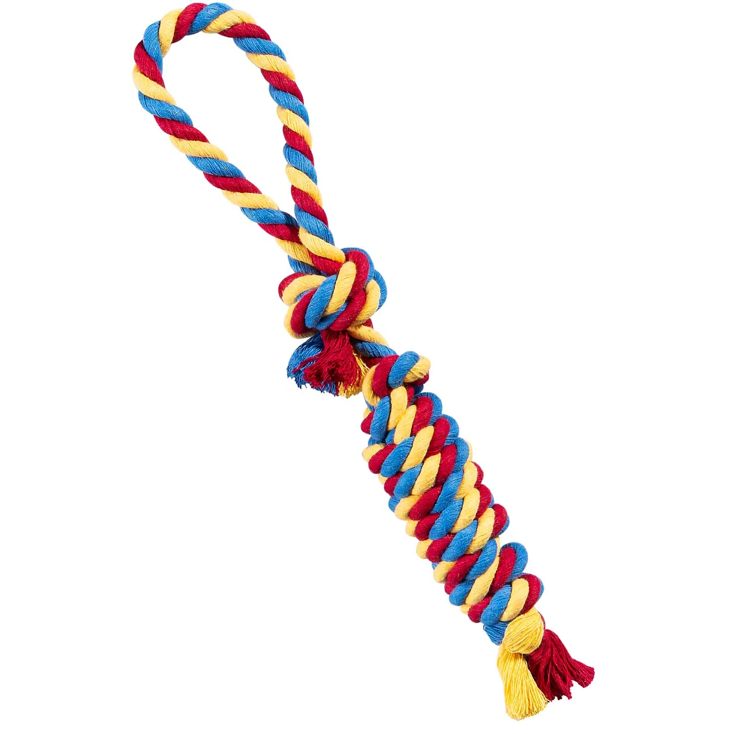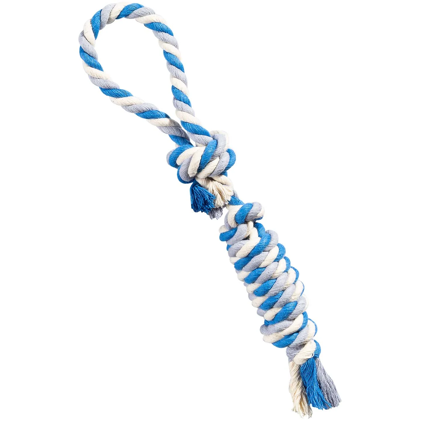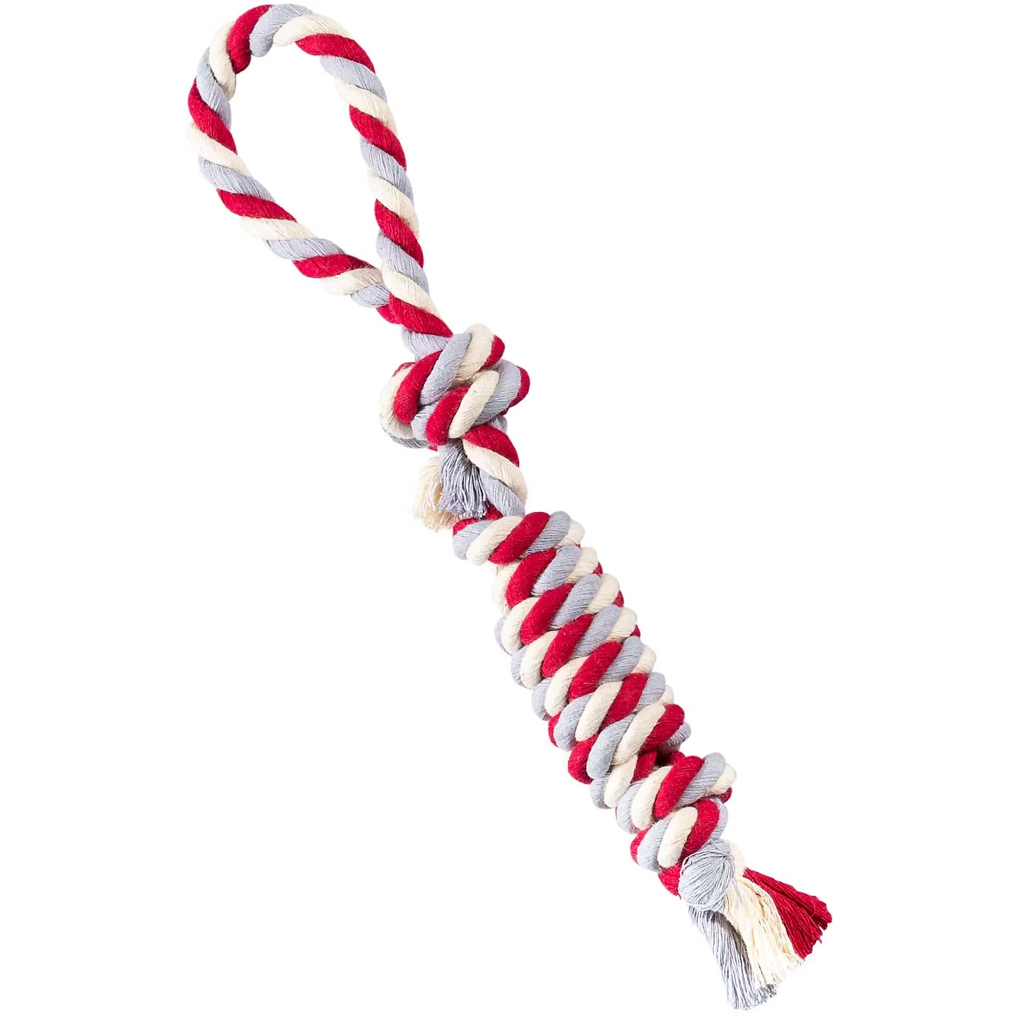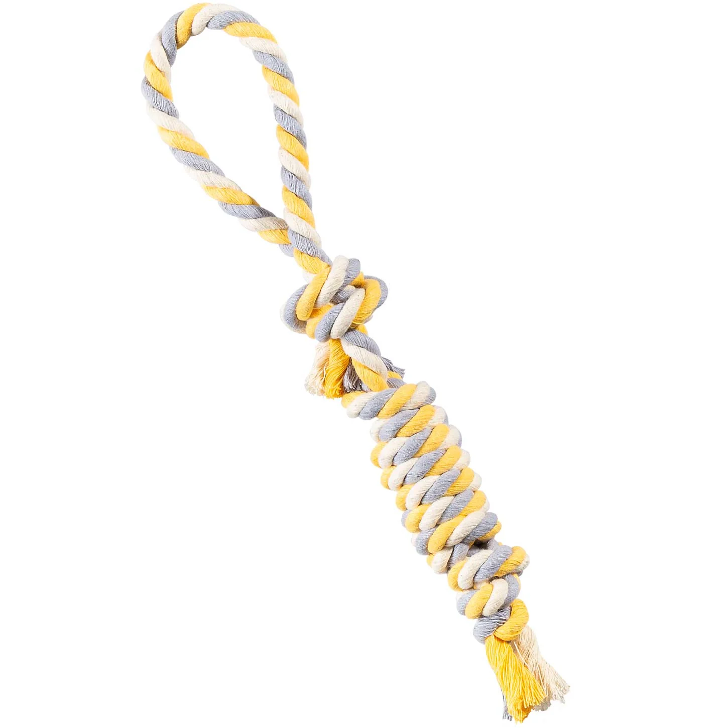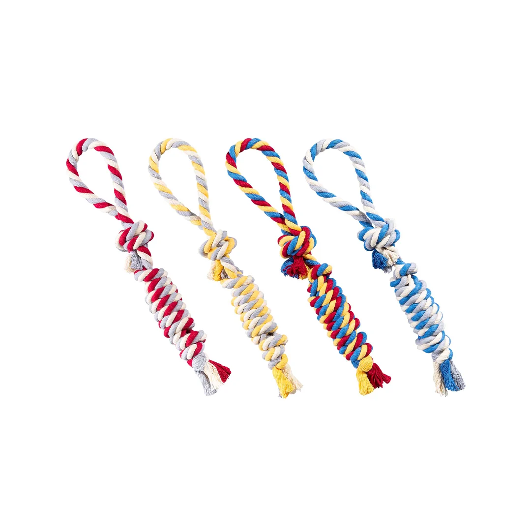 الیاف پنبهای استفادهشده در این محصول، به دلیل مقاومت بالا، در برابر کشش و فشار دندانها دوام بسیار خوبی دارند. این ویژگی محصول را برای تولهسگها، سگهای جوان و حتی حیوانات پرانرژی مناسب میکند. حلقه انتهایی اسباببازی امکان کنترل بهتر توسط صاحب یا مربی را فراهم میکند و بازیهای کششی را ایمنتر و جذابتر میسازد. همچنین وزن مناسب محصول باعث میشود بتوان از آن در فضای خانه یا فضای باز استفاده کرد.