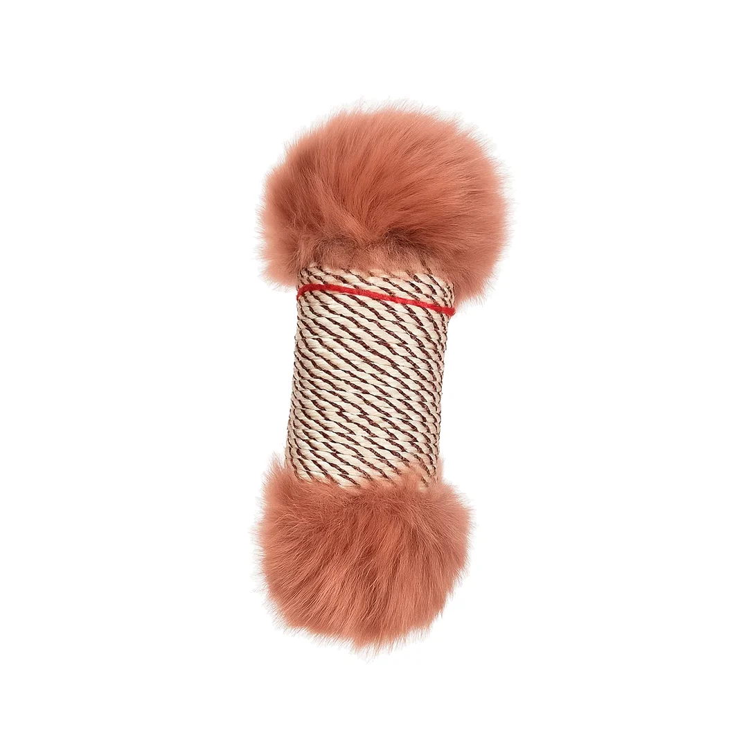 بخش مرکزی اسباببازی با کنف پیچیده پوشیده شده و اصطکاک لازم برای چنگزدن گربه را فراهم میکند. گربه میتواند بهراحتی آن را بگیرد، گاز بگیرد یا روی زمین حرکت دهد. دو سر پشمی با بافت نرم خود توجه گربه را جلب میکنند و او را به تعامل بیشتر با اسباببازی ترغیب میکنند.
