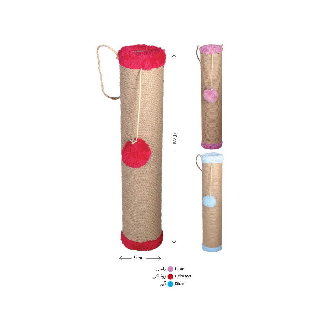 اسکرچر استوانه‌ای کدیپک مدل ساقه با طراحی دو‌منظوره (آویز و زمینی) و پوشش کنف طبیعی، هم یک اسکرچر مقاوم و هم وسیله‌ای سرگرم‌کننده برای گربه است.