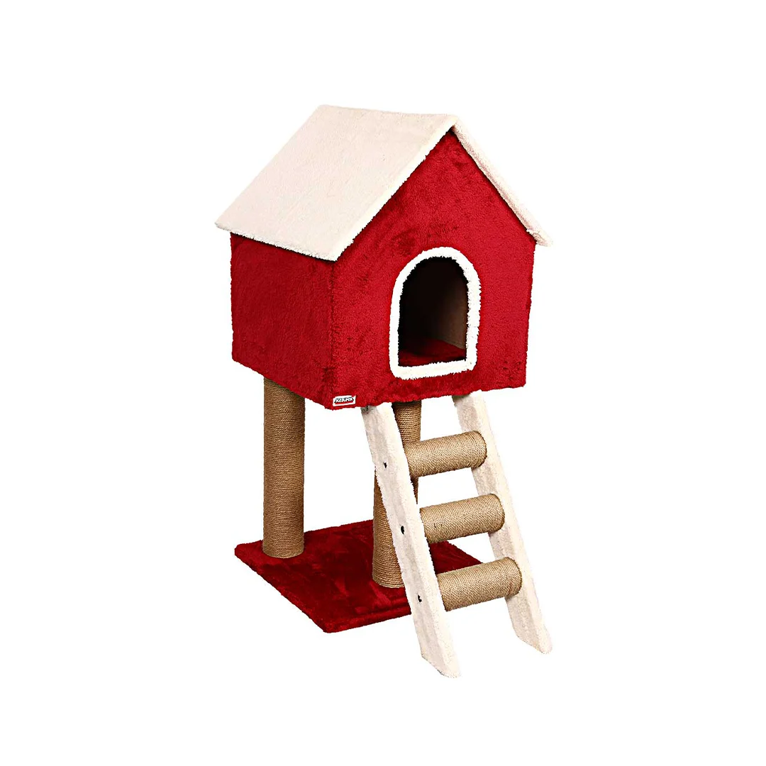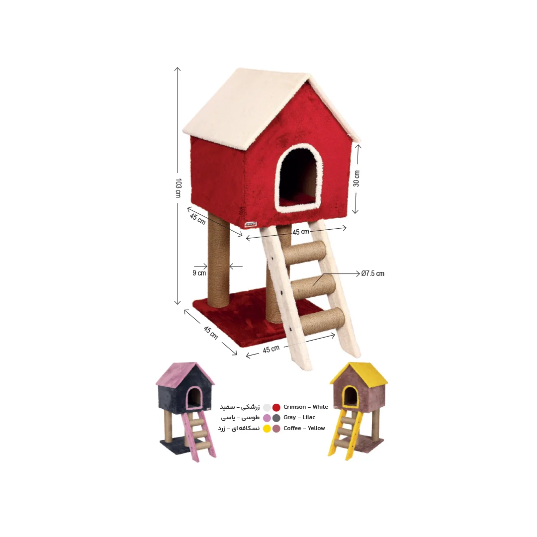 از سوی دیگر، سقف و بخشهایی از بدنه با الیاف طبیعی کنف پوشیده شدهاند. این پوشش نهتنها محصول را زیباتر میکند، بلکه سطحی ایدهآل برای ناخنکشی گربه فراهم میآورد. وجود این اسکرچر طبیعی، نیاز غریزی گربه به ناخنکشی را به شکلی سالم پاسخ میدهد و در عین حال از آسیب به مبلمان و وسایل خانه جلوگیری میکند.