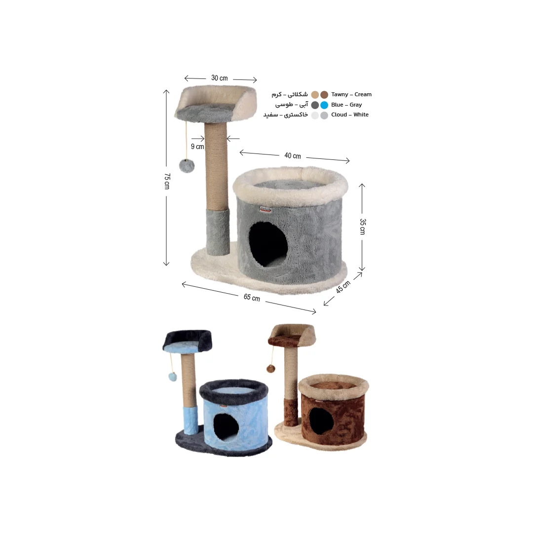 در بخش پایینی محصول یک لانه بزرگ با ورودی گرد قرار گرفته است. کف این لانه با تشک نرم پوشیده شده و محیطی دنج و راحت برای استراحت یا مخفی شدن گربه ایجاد می‌کند. این ویژگی باعث می‌شود گربه در زمان خستگی یا نیاز به آرامش، مکان امنی در اختیار داشته باشد.