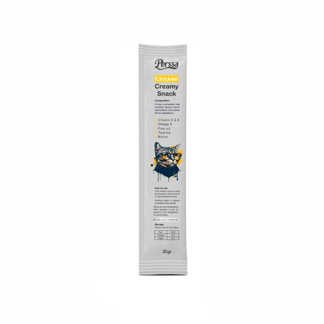 بستنی گربه پرسا با طعم مرغ (Perssa Creamy Snack With Chicken) از برند ایرانی پرسا (Perssa)، یک تشویقی مغذی و محبوب است که با طعم لذیذ و طبیعی مرغ، اشتهای گربهها را افزایش میدهد و در عین حال مواد مغذی لازم برای سلامت آنها را تأمین میکند.