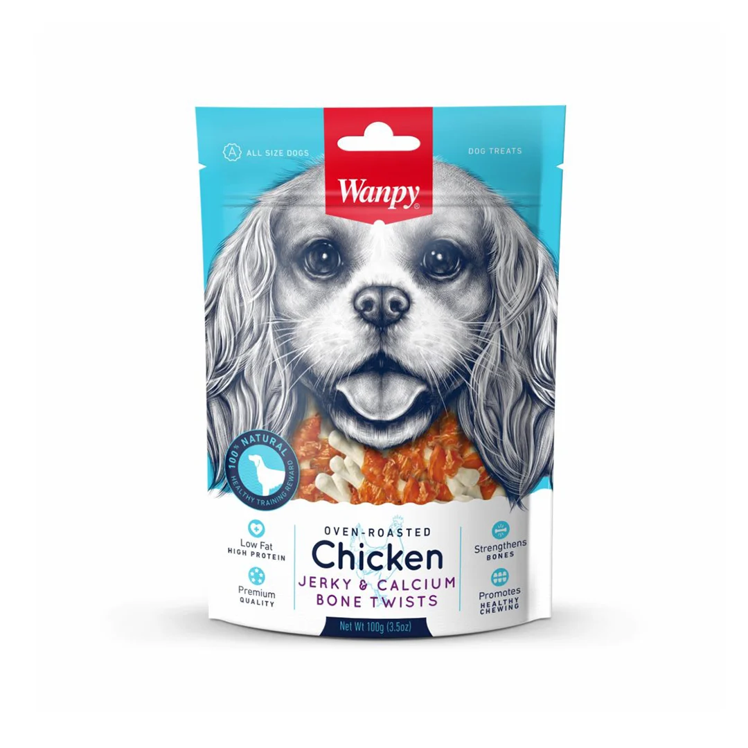 تشویقی سگ ونپی کلسیم و مرغ Chicken Jerky & Calcium Bone Twists یک میانوعده سالم و بسیار باکیفیت است که از ترکیب بیسکوییت کلسیمی نواری همراه با دورپیچ گوشت مرغ تهیه میشود. طعم جذاب مرغ باعث میشود سگها با اشتیاق آن را بخورند و برای آموزش، پاداش یا میانوعده روزانه فوقالعاده مناسب باشد.