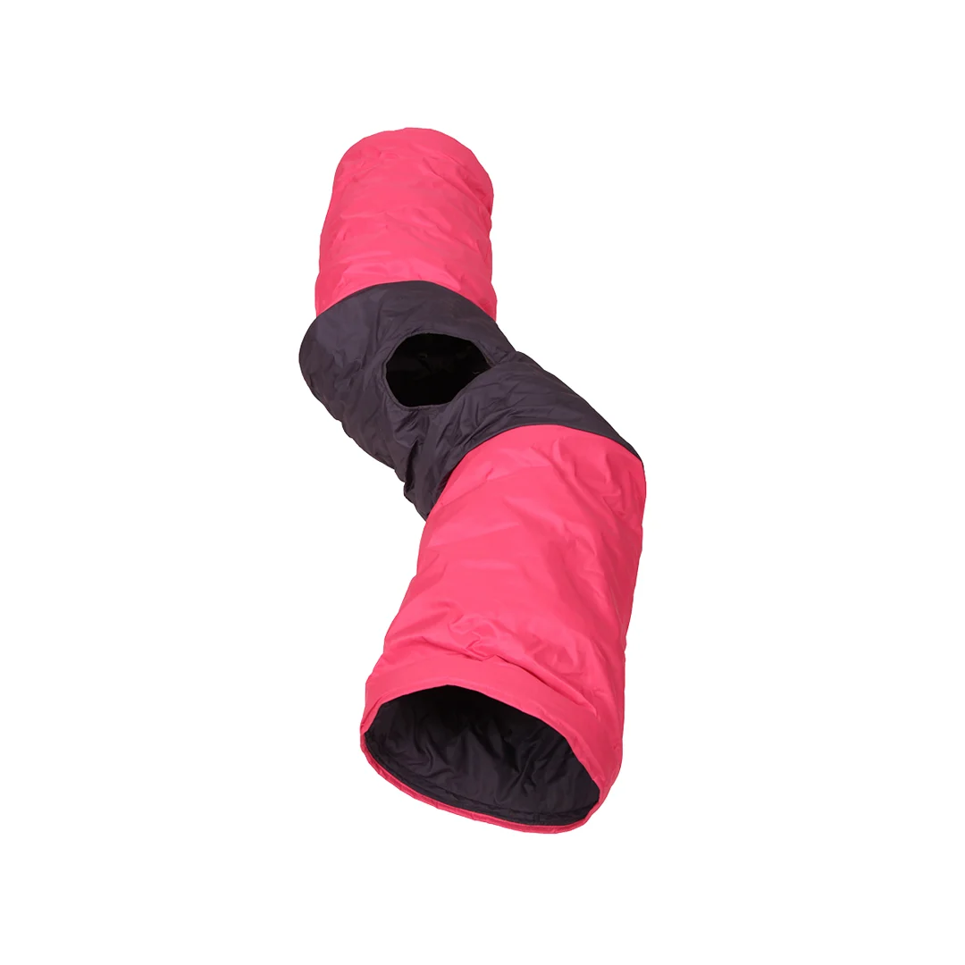 تونل گربه پارچهای مدل زیگزاگ به دلیل انعطافپذیری طراحی، هم برای استفاده در فضای باز و هم در خانه مناسب است. این تونل به راحتی جمع میشود و فضای کمی اشغال میکند. همچنین پارچه مقاوم و باکیفیت آن دوام بالایی دارد.