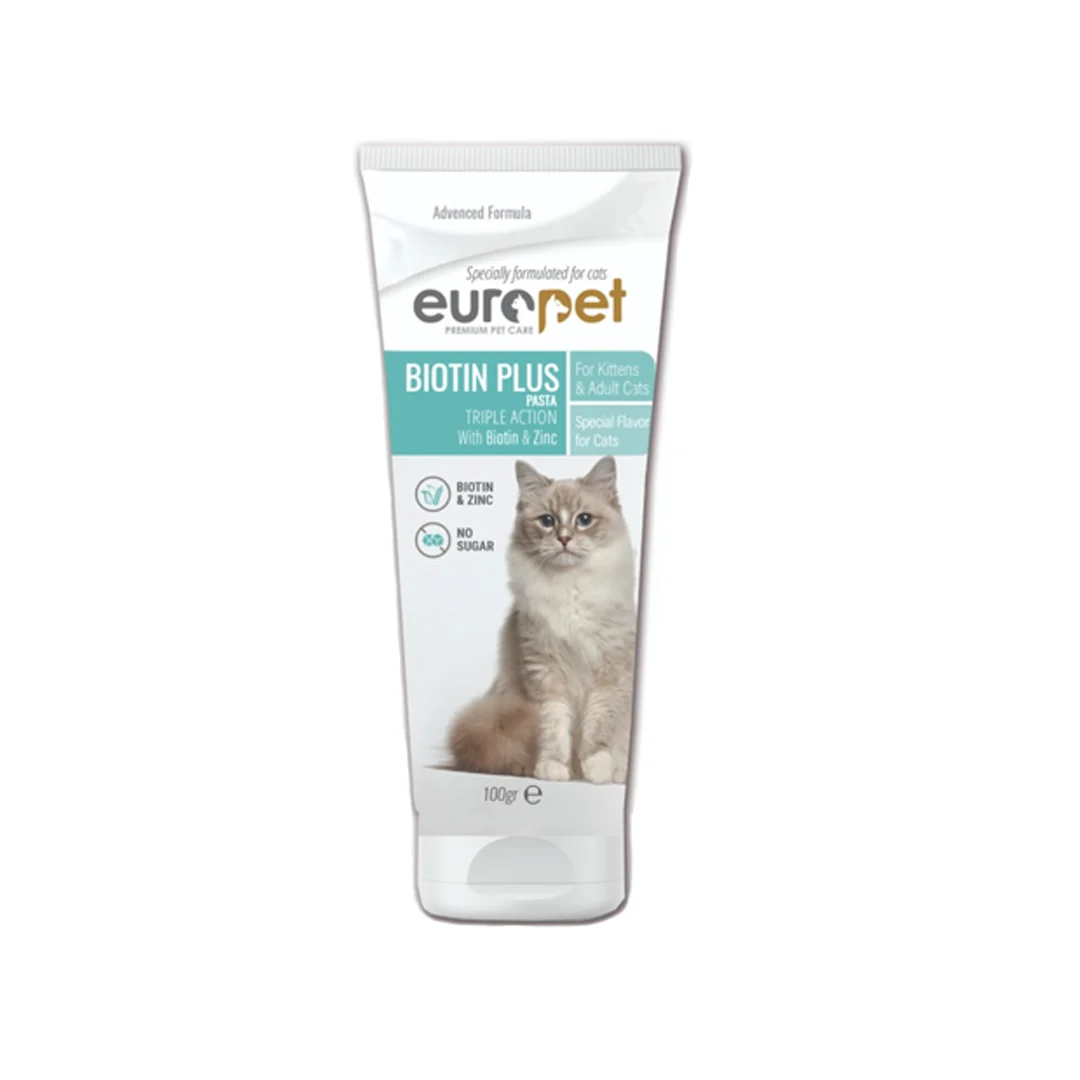 خمیر بیوتین گربه یوروپت Europet Cat Biotin Plus یک مکمل تخصصی برای تقویت پوست و موی گربههاست. این محصول به عنوان یک خمیر بیوتین گربه یوروپت شناخته میشود و برای بچهگربه و گربه بالغ مناسب است. ترکیبات موجود در این خمیر شامل بیوتین، ویتامین E، منیزیم و روی است که هرکدام نقش مهمی در سلامت پوشش بدن و تقویت پوست دارند. این خمیر طعم مناسبی دارد و مصرف روزانه آن آسان است.