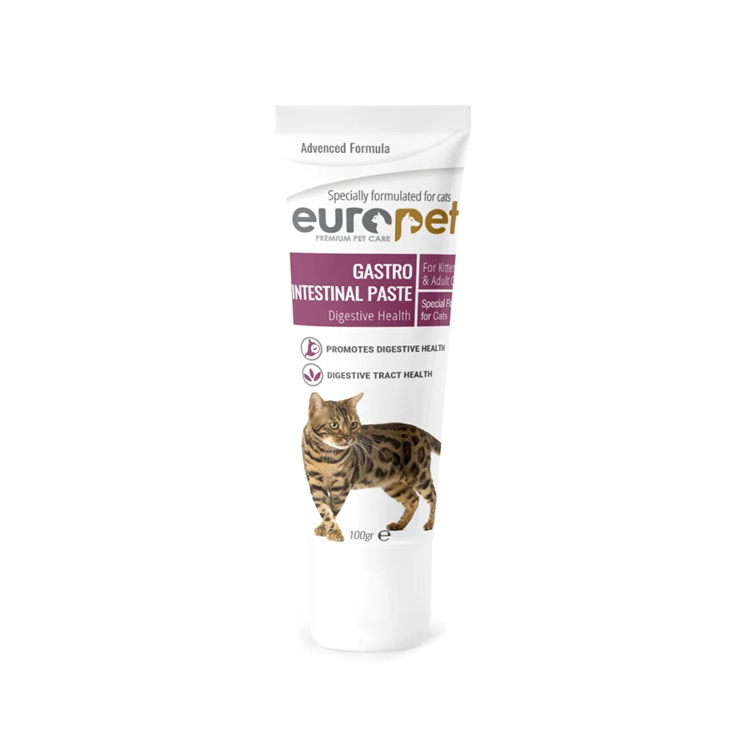 خمیر گوارشی گربه یوروپت Europet Gastro Intestinal Paste یک مکمل تخصصی برای تقویت دستگاه گوارش گربههاست. این محصول به عنوان یک خمیر گوارشی گربه یوروپت شناخته میشود و برای بهبود عملکرد روده، افزایش ایمنی گوارش و پیشگیری از مشکلات شایع مانند اسهال، استفراغ و انسداد روده طراحی شده است. این خمیر برای بچهگربه و گربه بالغ مناسب است و طعم مطلوب آن مصرف روزانه را آسان میکند.