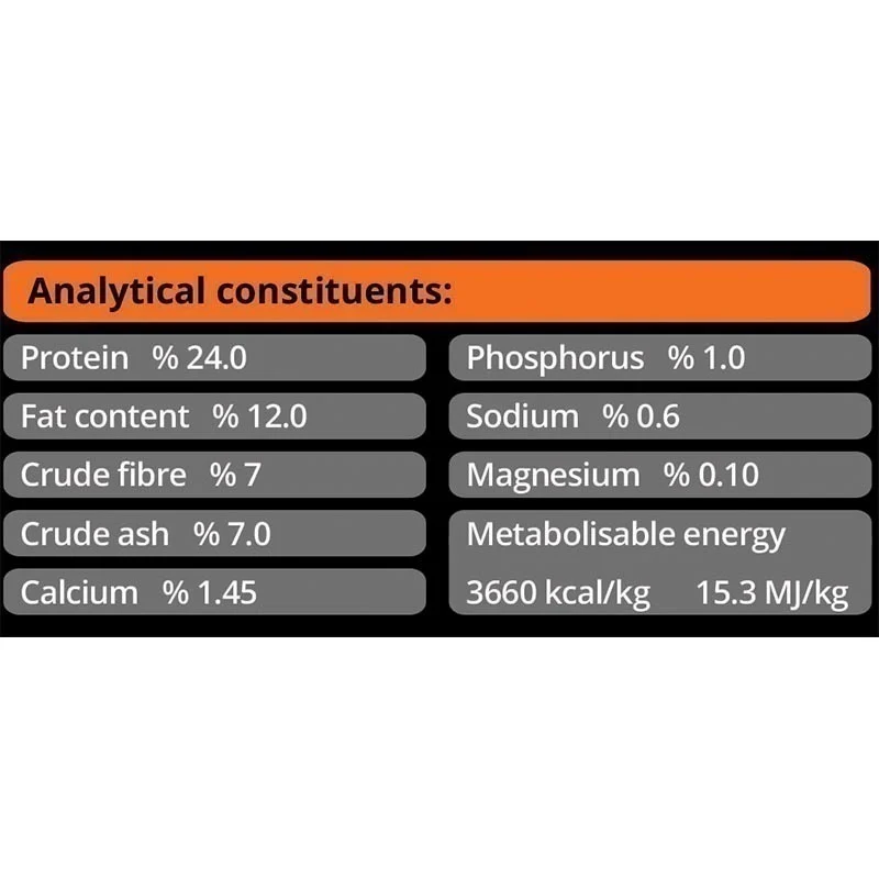 سطح پروتئین ۲۴٪ و چربی ۱۲٪ انرژی متعادل و کافی را برای فعالیت روزانه سگهای نژاد کوچک فراهم میکند، در حالی که میزان متوسط چربی و قابلیت هضم بالا آن را برای سگهای دارای گوارش حساس کاملاً مناسب میسازد. نسبت متعادل اسیدهای چرب ضروری امگا ۳ و ۶ به سلامت پوست، شفافیت و درخشندگی موها کمک کرده و سیستم ایمنی را تقویت میکند.