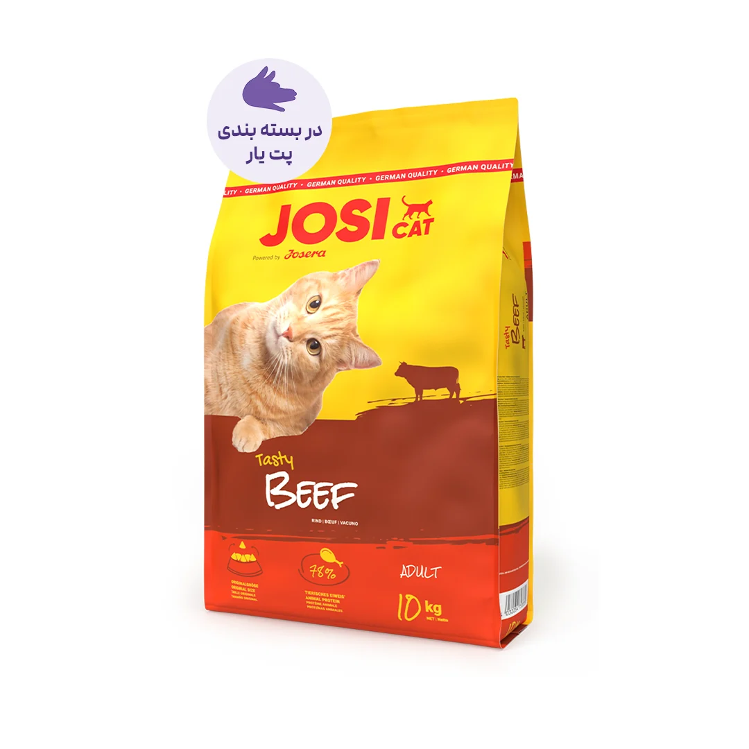 طعم گوشت گاو باعث افزایش اشتها شده و مصرف منظم غذا را برای گربههای بالغ تسهیل میکند.