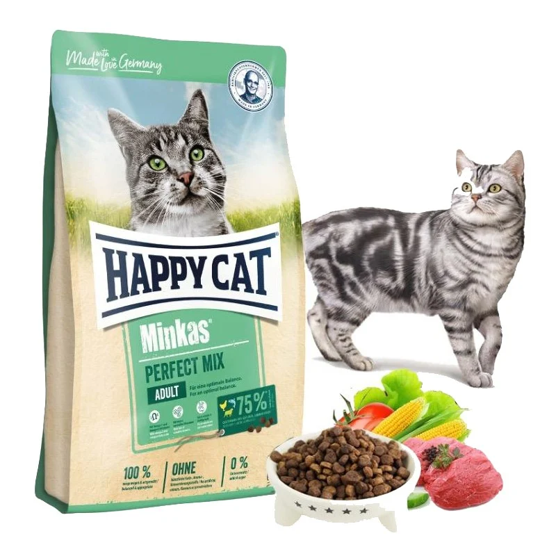 غذای خشک گربه هپی کت میکس Happy Cat Minkas Mix یک غذای کامل، متعادل و بسیار خوشخوراک برای گربههای بالغ است که با ترکیبی از مرغ، بره و ماهی تولید شده تا علاوه بر ارزش غذایی بالا، طعمی جذاب و متنوع را برای گربه فراهم کند.