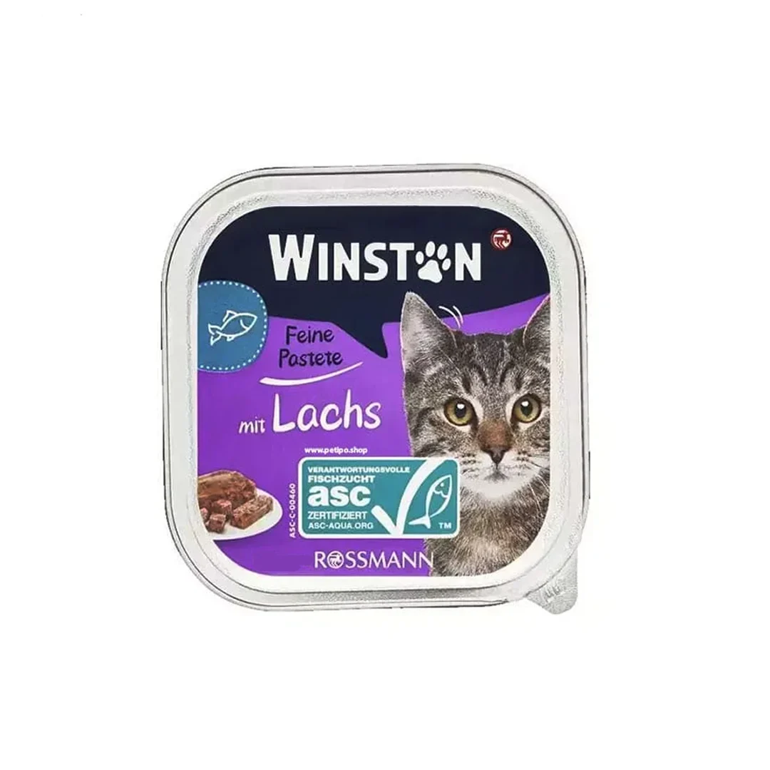 ووم Winston Feine Pastete mit Lachs یک غذای باکیفیت اروپایی است که با طعم ماهی قزلآلا و ترکیبات مغذی، تغذیهای کامل و متعادل برای گربههای بالغ فراهم میکند و برای استفاده روزانه انتخابی سالم و خوشخوراک است.