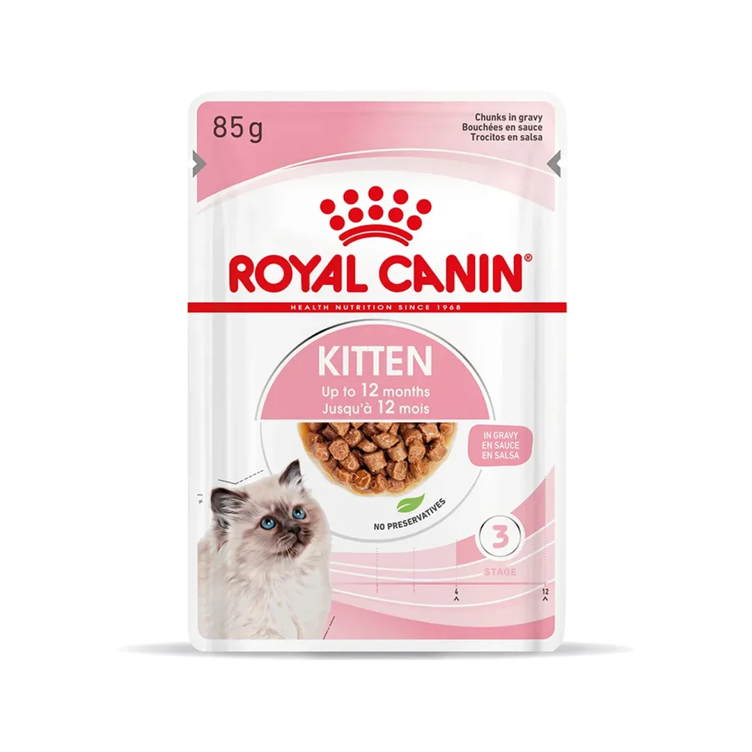 پوچ بچه گربه رویال کنین Royal Canin Kitten In Gravy یک غذای مرطوب کامل و تخصصی برای بچهگربههای 4 تا 12 ماه است. فرمول این محصول با نیازهای رشدی گربههای جوان تطبیق داده شده و هضم آسان، جذب مناسب و طعم اشتهابرانگیز را بهصورت همزمان ارائه میدهد. این غذا گزینهای ایدهآل برای دوره از شیر گرفتن، سنین رشد و تقویت ایمنی بدن بچهگربهها است.
