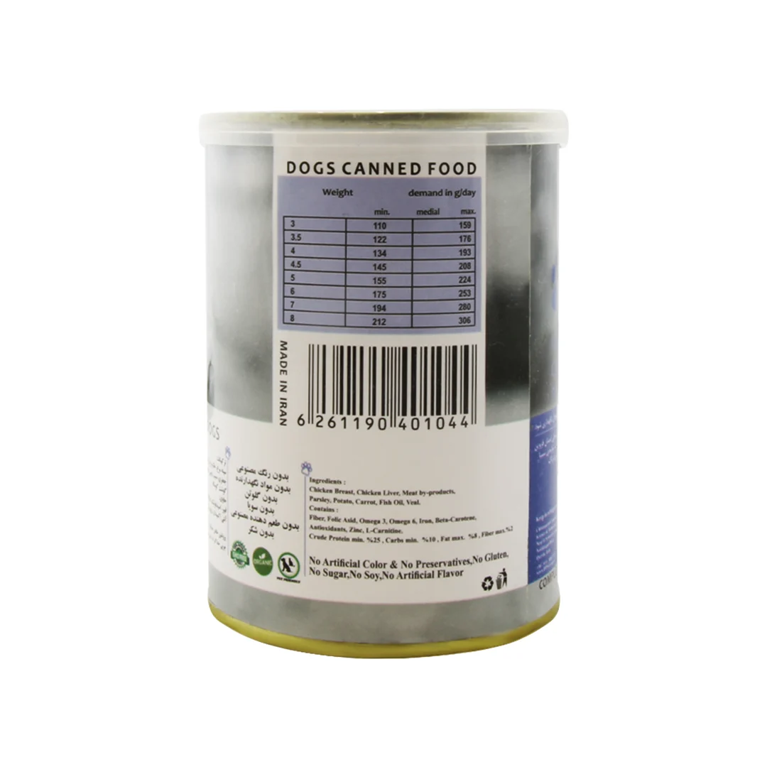 این کنسرو با ترکیب گوشت تازه گوساله و مرغ تهیه شده است تا منبعی غنی از پروتئین حیوانی باکیفیت را برای سگها فراهم کند. وجود دو نوع گوشت مختلف در فرمولاسیون آن، باعث افزایش جذابیت طعم و تأمین طیف گستردهای از اسیدهای آمینه ضروری برای رشد عضلانی، انرژی روزانه و سلامت عمومی میشود.