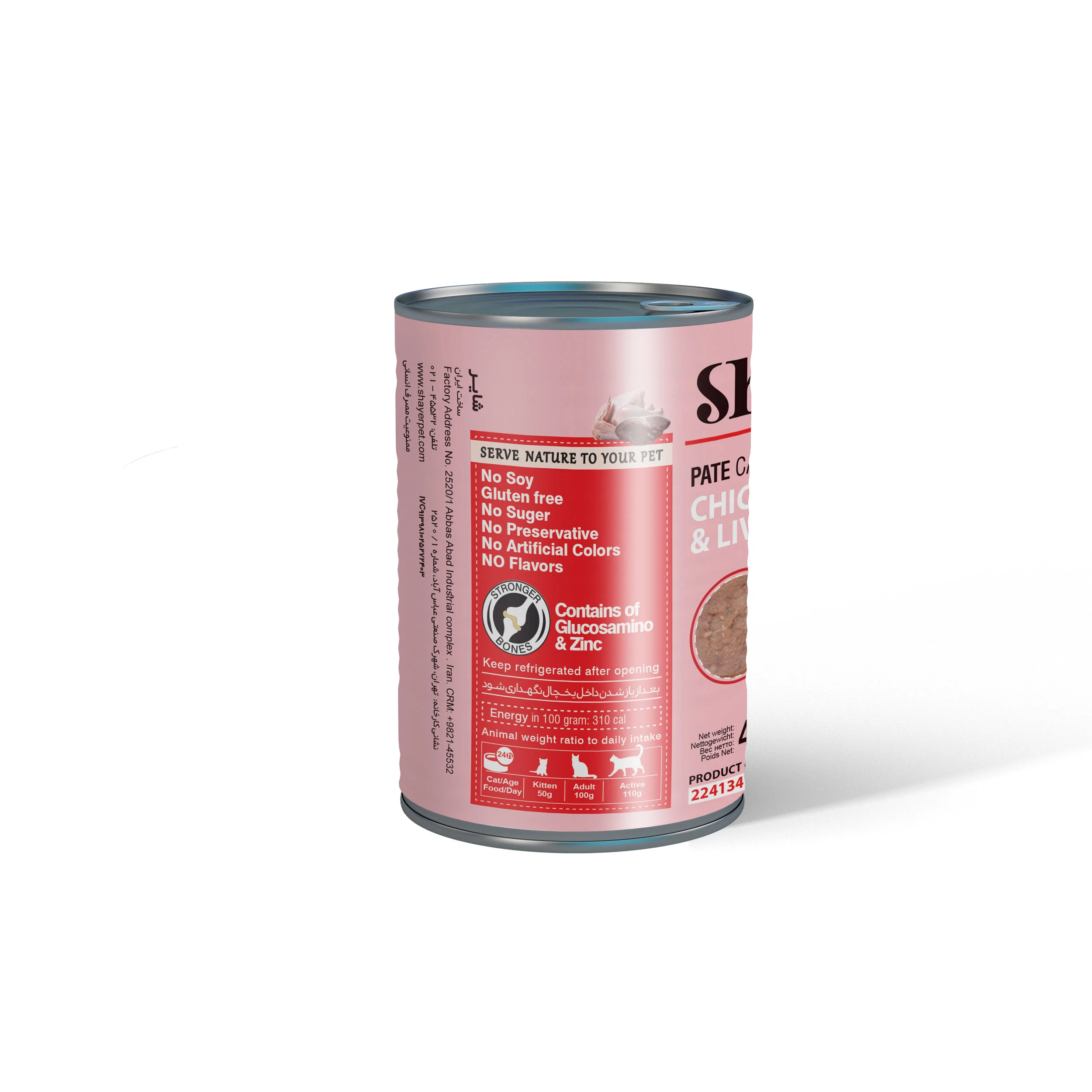 کنسرو مرغ و جگر شایر ۱۰۰٪ طبیعی است و هیچگونه افزودنی شیمیایی، شکر یا گلوتن در آن بهکار نرفته است. به همین دلیل یک گزینه مطمئن و سالم برای تغذیه روزانه حیوان خانگی شما به شمار میرود.