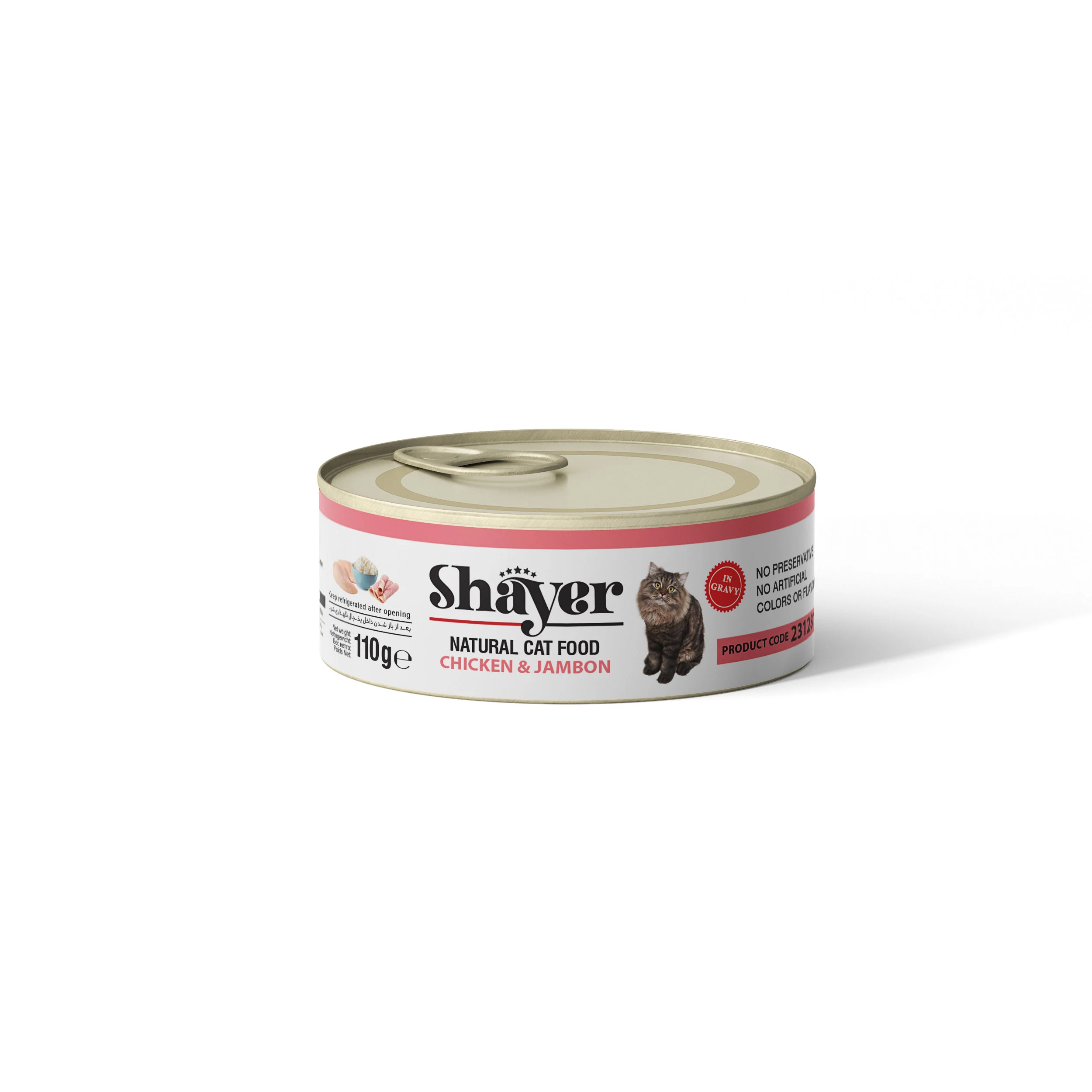 کنسرو گربه شایر مرغ و ژامبون (Shayer Natural With Chicken & Jambon in Sauce) با وزن 110 گرم، یک وعده کامل، خوشطعم و مغذی برای گربههای بالغ تمامی نژادهاست. این محصول از مرغ تازه و ژامبون طبیعی در ترکیب با سس مخصوص تهیه شده و علاوه بر طعم لذیذ، ارزش غذایی بالایی برای حیوان خانگی شما دارد.