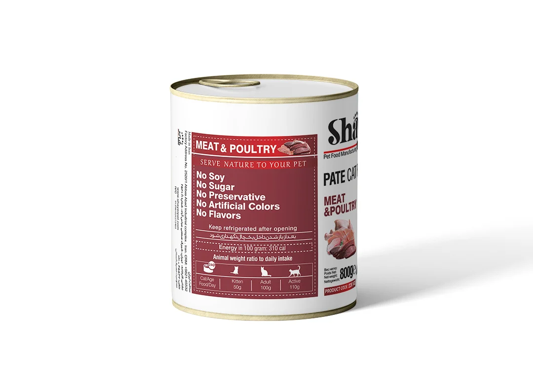ترکیبات: گوشت تازه گوساله، گوشت ماکیان، مواد اولیه طبیعی