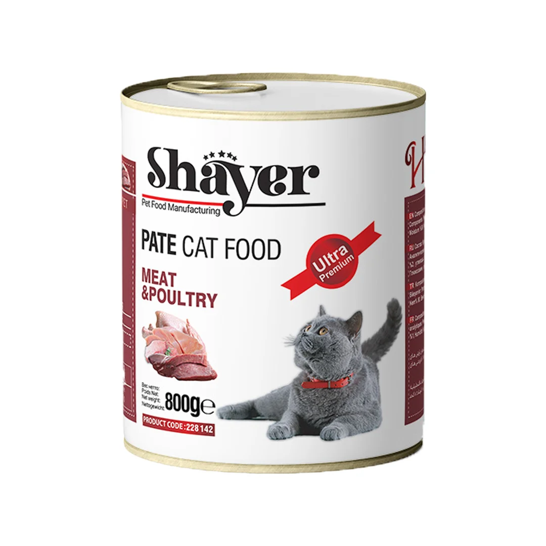کنسرو شایر طعم گوشت گاو و پرندگان ۱۰۰٪ طبیعی است و در آن هیچگونه افزودنی شیمیایی، طعمدهنده مصنوعی، نمک، گلوتن یا شکر استفاده نشده است. به همین دلیل یک گزینه مطمئن و سالم برای تغذیه روزانه گربههای بالغ تمامی نژادها به شمار میرود.