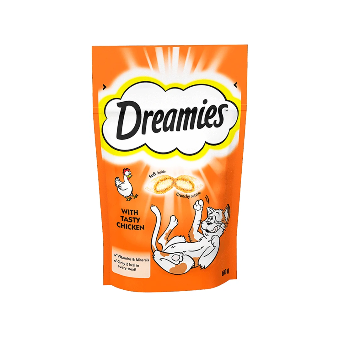 تشویقی گربه دریمیز طعم مرغ یکی از پراستفادهترین و پرفروشترین اسنکهای گربه در دنیا است. این تشویقی با بافت دوتایی – پوسته بیرونی ترد و مغز نرم و لذیذ – حتی گربههای بدغذا را هم مجذوب خود میکند. طعم مرغ واقعی باعث شده این محصول به یک پاداش روزانه عالی تبدیل شود.